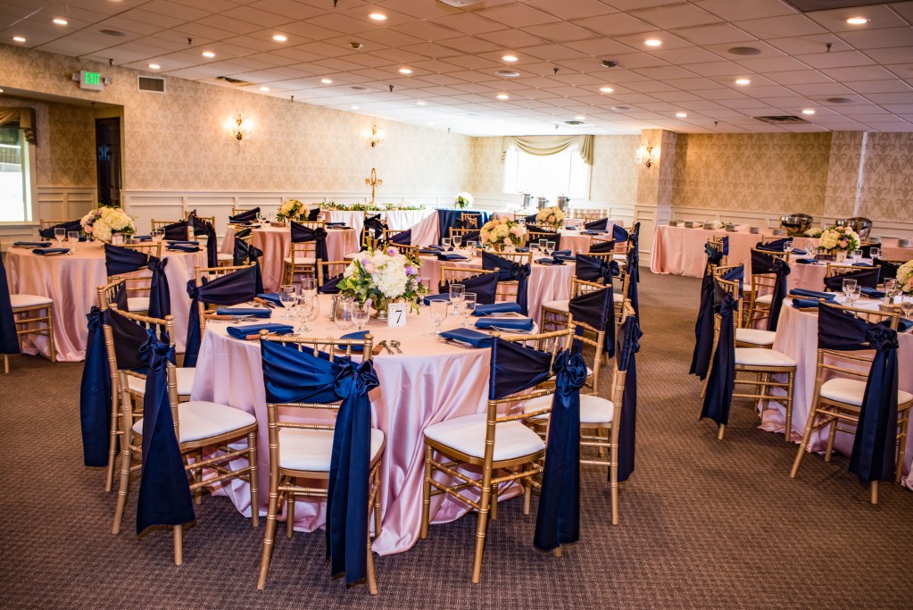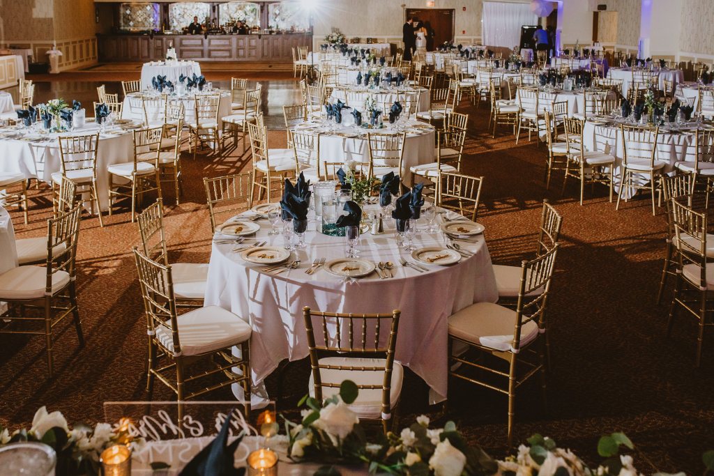 This luxurious room features sparkling crystal chandeliers, two oak bars enhanced with hand carved glass mirrors, an extra-large hardwood dance floor, elevated stage, and an audio visual system. A private bridal suite is also available for your use. Minimum guest guarantee on Friday and Sunday night is 200 on Saturday night the guest guarantee is 225. Maximum guest number for sit down dinner and reception is 450.